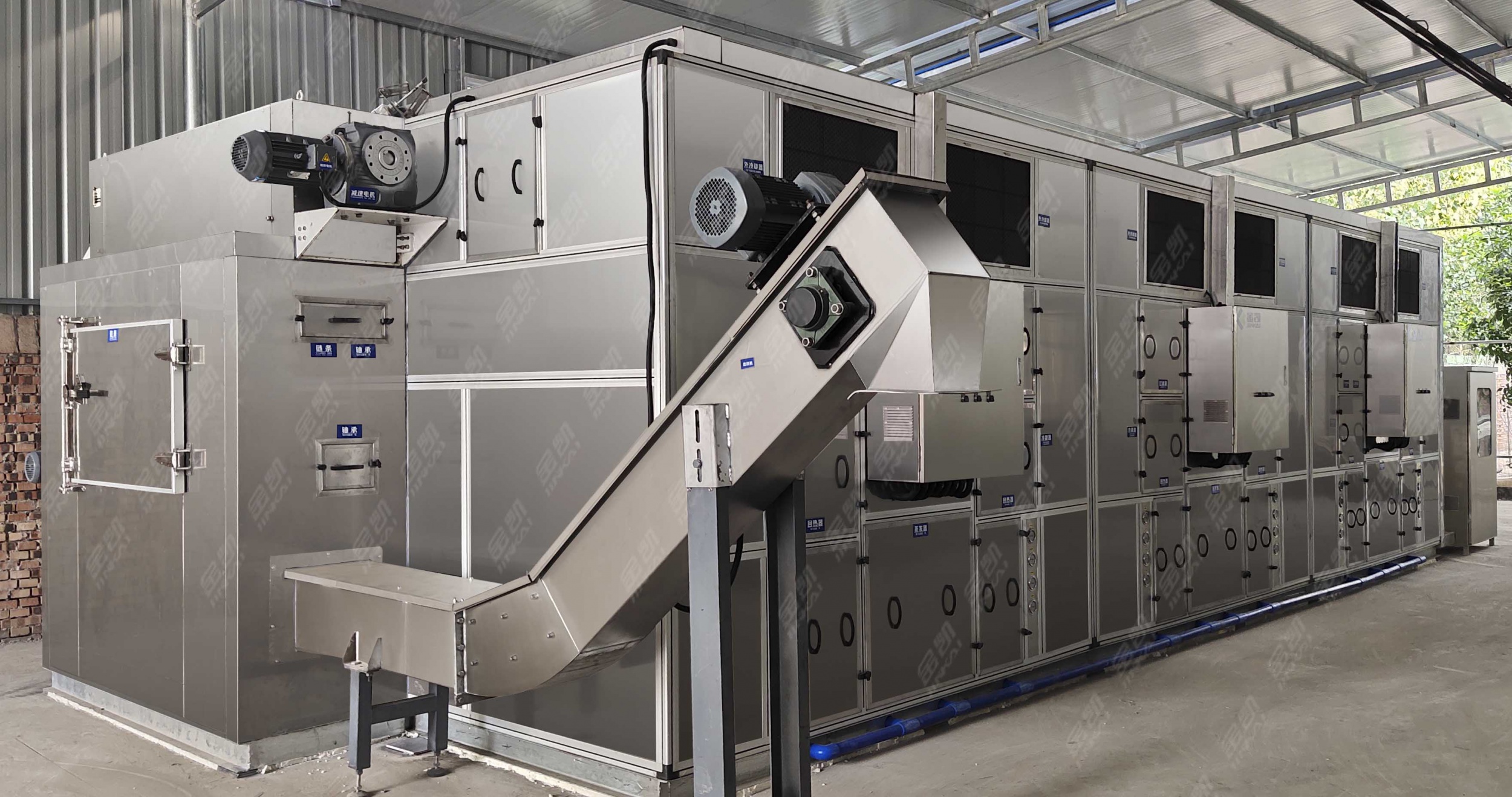 保持干燥的車間環(huán)境;因低溫干化電器件都是金屬制作的,且車間濕度大,金屬電器表面會比較容易潮濕,而在接通電源時,附著在金屬電器表面的水汽會造成電器短路,從而燒毀電器。所以機組周圍要保持清潔干燥,通風良好。要定期清洗(2—3月、空氣側(cè)換熱器,保持良好的換熱效果。熱泵污泥烘干機機組周圍勿堆放雜物,以免堵塞進出風口,機組四周應保持清潔干燥,通風良好。